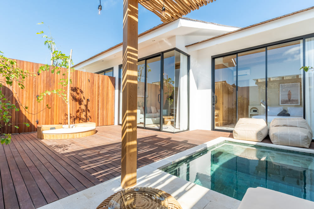 Modern 1BR villa just minutes from Bingin Beach, offering a peaceful escape in a prime location. The villa features an open-plan living area and a fully equipped kitchen, perfect for unwinding or hosting. The cozy bedroom with an en-suite bathroom ensures restful nights. Step outside to a private pool surrounded by tropical greenery. Ideal for couples or solo travelers seeking a stylish, serene stay close to beaches, cafes, and Bali’s surf spots.