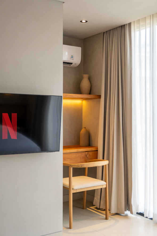 This exceptional 2BR loft villa provides an intimate and distinctive Bali sanctuary, featuring elegantly air-conditioned living spaces with a lounge and two spacious bedrooms, each with pristine ensuite bathrooms and rain showers. Floor-to-ceiling black-framed glass doors frame breathtaking views of the lush tropical garden, seamlessly blending indoor-outdoor living. Welcome the refreshing ocean breeze by opening the expansive doors, or retreat into the comfort of air-conditioned interiors. The private pool and verdant garden create your own secluded paradise. Stay connected with reliable high-speed Wi-Fi throughout the villa, from both bedrooms and kitchen to the living areas and poolside, ensuring comfort and convenience during your unforgettable Bingin escape.