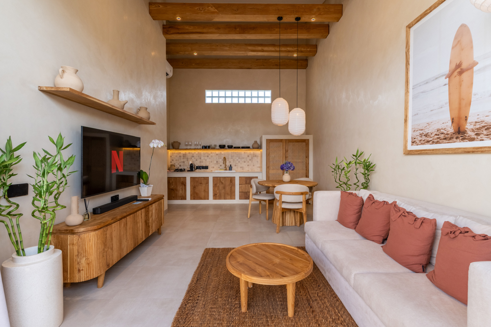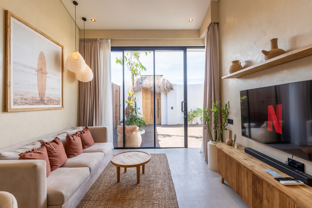 Discover your dream Bali getaway in this compact, and warm 1-bedroom villa, perfectly positioned just around 5 minutes drive away from the hidden gem of Nyang Nyang Beach and 5 minutes drive to the iconic Uluwatu Temple.You're ideally located near Uluwatu's trendiest cafes and restaurants with easy access to world-class surf breaks, and clifftop dining like:- Mana Uluwatu- Malini Uluwatu- Rockfish at The Uluwatu- Teja UluwatuTucked away in a peaceful corner of Uluwatu, this cozy one-bedroom villa blends tropical charm with modern comfort. Lush gardens and thoughtful Balinese touches create a sense of serenity, while your private pool and open-air living space make it the perfect hideaway for couples or solo travelers.Inside, you’ll find a beautifully appointed bedroom with an ensuite bathroom, a fully equipped kitchen for home-style meals, and a comfortable living area with a smart TV. Whether you’re relaxing by the pool or exploring Uluwatu’s beaches and temples, this villa offers the ideal balance of warmth, privacy, and style.