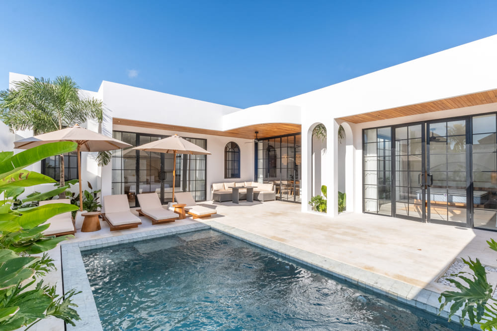 This stylish 2-bedroom villa in Bingin blends Mediterranean charm with tropical living. Featuring arched details, soft tones, and an open layout, it offers a serene, airy vibe. The living space opens to a private pool and lush garden, ideal for relaxing or entertaining. Each bedroom includes an en-suite bathroom and tasteful decor. Just a short stroll from Bingin Beach and local cafes, this villa is a perfect coastal retreat with easy access to surf and sunsets.